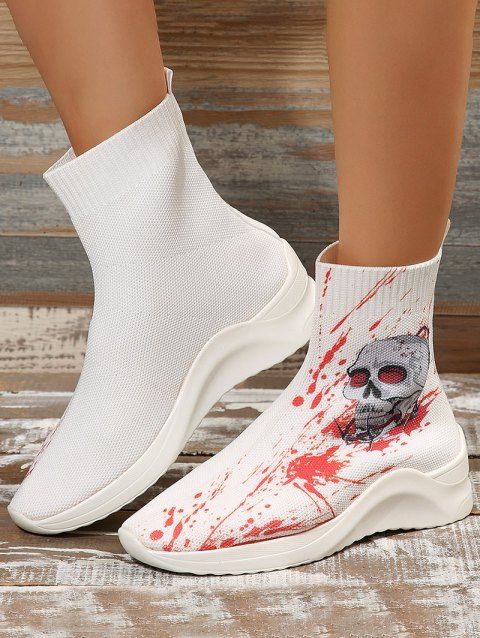 Halloween Skull Print High Top Slip On Shoes